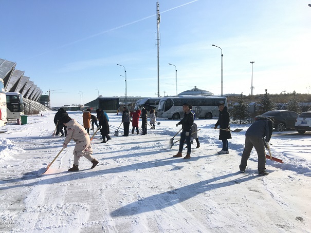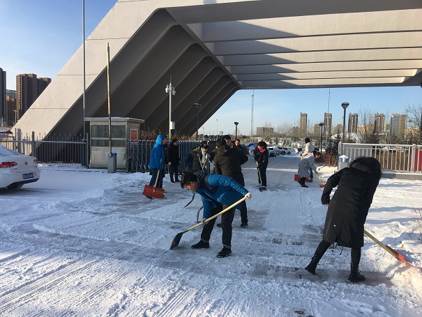 寒冷的天氣擋不住大家的熱忱,客運公司全體員工揮舞著鐵鍬和除雪鏟,齊心協(xié)力,干勁十足,鏟的鏟、推的推、掃的掃,干的熱火朝天,不亦樂乎,忙碌的身影構(gòu)成了一道亮麗的風(fēng)景線。經(jīng)過兩個多小時的奮戰(zhàn),將公司附近的路面和場站院內(nèi)的主干道積雪全部清除干凈。