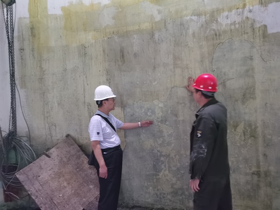 檢查小組通過采用外力敲擊及肉眼觀察的方式對B車間煙囪內(nèi)壁防腐層施工質(zhì)量進行詳細檢查。