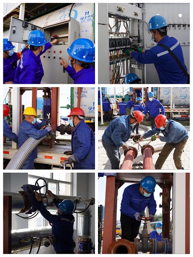 演練伊始,參加演習(xí)的運(yùn)營所、司爐車間、檢修車間、電氣車間、儀表車間、設(shè)備處、安保處等人員按照預(yù)設(shè)的情境,各司其職,開始了管路連接、電源接入、鍋爐調(diào)試,再進(jìn)行循環(huán)泵、補(bǔ)水泵盤車的調(diào)試,以及補(bǔ)水、循環(huán)泵啟動、鍋爐點(diǎn)火等等一系列有條不紊的實(shí)戰(zhàn)操作。