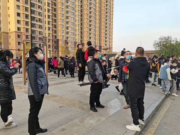 一行人還與小區(qū)居民進行了交流,小區(qū)居民表示,在物業(yè)工作人員的安排下核算檢測迅速有序,大家都愿意積極配合小區(qū)防疫工作。