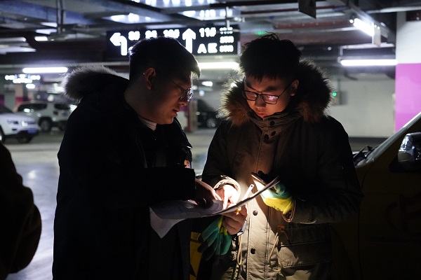 11月12日上午,在巨海城八區(qū)6號居民樓副一層,城發(fā)橋靠分公司第六運(yùn)營所的員工們正在進(jìn)行低區(qū)二次網(wǎng)主管道的流量測量工作。
