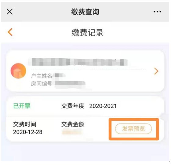 ⑦驗證之后即可查詢房屋繳費記錄,在該頁面點擊發(fā)票預(yù)覽