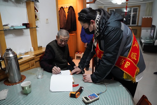 在社科院家屬樓3號樓1單元1樓東戶家中,該房屋戶型既是底層又是邊戶,工作人員利用專業(yè)的測溫設(shè)備測得用戶家中室溫為23℃。雖然室溫達標,但看到房主是一位上年紀的大娘,劉婷還是不放心,用手摸了摸用戶家中的暖氣,并用測溫槍對房間內(nèi)的所用暖氣片都進行了測溫,測得暖氣片溫度平均都在45℃左右。"不用摸啦,也不用測了,別看我住的是一樓,但是可暖和啦,這個溫度我相當滿意。"大娘說到。隨后,工作人員拿出"便民服務(wù)卡",叮囑大娘家中暖氣有任何問題,都可以撥打上面的電話聯(lián)系客服管家,隨叫隨到。在小區(qū)1號樓2單元一戶頂層用戶家中,是一對老夫妻。開門的老大娘看到我們工作人員凍得通紅的雙手,趕忙給我們到了熱水,"都喝點熱水,在大娘這歇歇腳,暖和暖和。"大娘說到。在問到對我們的服務(wù)滿不滿意時,大爺激動的拉著工作人員的手說:"滿意,滿意,可滿意了。雖然在前期有一點小誤會,但是咱們工作人員一次次熱情地上門服務(wù),認真負責地解決問題,我們之間的小誤會早就解開了?,F(xiàn)在對咱們城發(fā)工作人員,除了感謝,更多的就是理解和體諒了。"臨走時,大爺還叮囑我們夏天不忙的時候,常來家里做客。