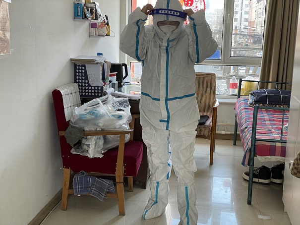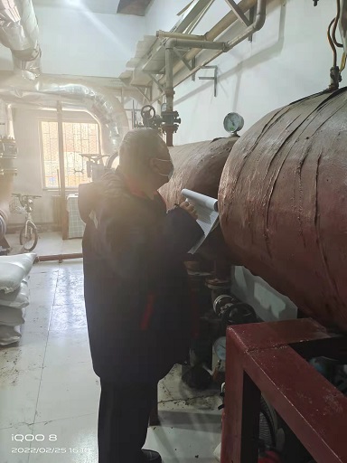 新華東分公司巨華朗域熱力站是受小區(qū)封控管理影響的第一個熱力站,公司臨時組建的運營小組的李文霞從17日小區(qū)封控以來,一直在熱力站值守。2月24日,筆者來到長樂宮供暖所,看到所長李瑋潔正在和李文霞視頻通話:"每天的消殺要做好,你自己和你愛人的防護工作也要做好,站里運行一切正常吧?你還需要什么物資嗎?"李瑋潔關(guān)切的詢問、耐心的叮囑著。李文霞說:"站內(nèi)運行一切正常,我每天都按照要求對站內(nèi)進行消殺,我和我愛人也很注意防護工作,分公司委托疫情防控人員給我們送進來的物資還有很多,請領(lǐng)導(dǎo)放心,我會一直堅守在工作崗位上。" 筆者又看到一旁有位工作人員在穿防護服,李瑋潔告訴筆者:"武警小區(qū)熱力站也在封控區(qū)域,我們和疫情防控相關(guān)人員溝通后,每天由站員穿著防護服,戴著口罩、醫(yī)用手套、防護面罩進行4次巡檢,現(xiàn)在正在穿隔離服準(zhǔn)備去巡檢的是索媛媛。"二十多分鐘后,索媛媛回來,筆者看到她的隔離面罩上全都是霧氣,只見她熟練地將隔離服脫掉扔到指定的垃圾箱內(nèi),隨即開始做常規(guī)的消殺。她告訴筆者:"以前看到防疫一線的醫(yī)務(wù)人員穿著防護服工作只是覺得他們很辛苦,但是自從我也需要穿防護服巡站時,才有了親身的體驗,不僅防護服穿脫時不方便,而且著裝后行動也變得不靈敏,我每次只穿半個小時左右就覺得很不舒服了,而醫(yī)護人員一穿就一整天,還不能上廁所,因此,我這點辛苦算不了什么。"