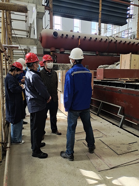 在三合村分公司200T燃煤熱水鍋爐等量替換工程現(xiàn)場,楊杰詳細聽取了工程的進展及復工復產工作準備情況,并針對目前存在的困難和問題,現(xiàn)場辦公研究解決方案。