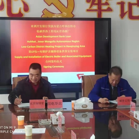 3月29日上午,城發(fā)公司與國電華北國際電力工程(北京)有限公司、北京瑞特愛能源科技股份有限公司聯(lián)合體簽訂內(nèi)蒙古呼和浩特市低碳供熱項目--辛家營、金橋、毫沁營區(qū)域集中供熱工程項目(供熱亞行貸款項目)第17包采購合同。