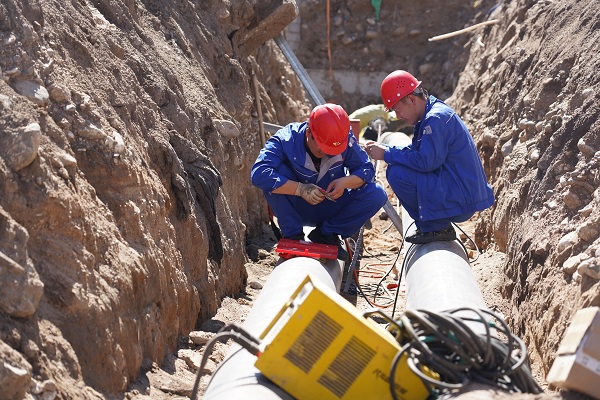 身后有兩個(gè)穿著藍(lán)色工衣的工人正在管道上貼著什么東西,正當(dāng)筆者準(zhǔn)備走近一看究竟時(shí),被他們厲聲喝住。"前方機(jī)器工作中,有輻射,人員不能靠近!"聽到這話,筆者不自主的向后退了兩步。待他們關(guān)閉機(jī)器,得到允許后,筆者才上前去了解了這兩個(gè)"神秘人"。原來,他們是負(fù)責(zé)給管線做探傷檢測的。所謂的探傷檢測,就是利用X射線可以穿透物質(zhì)和在物質(zhì)中具有衰減的特性,發(fā)現(xiàn)缺陷的一種無損檢測方法。剛才他們開啟的設(shè)備就是X射線機(jī)。筆者笑著打趣道:"那你們就是負(fù)責(zé)給管道拍X光片的管道醫(yī)生吧。"