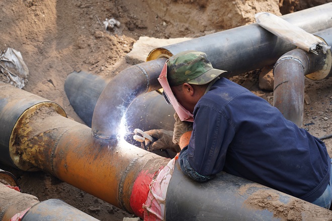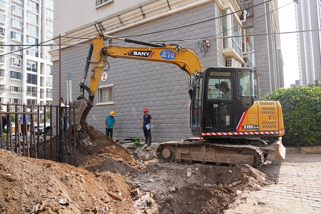 三合村第二運(yùn)營所副所長白云偉介紹,"開天花園小區(qū),分為二個作業(yè)區(qū),分別為"直埋管道開挖、焊接、回填作業(yè)區(qū)"和"更換單元立管作業(yè)區(qū)"。目前,整個小區(qū)樓棟的地溝管、高層單元的立管已全部更換。北區(qū)的直埋管道開挖、焊接工作今天全部完工,明天開始進(jìn)行打壓試驗(yàn),計劃下周一進(jìn)行回填,下周二前回填完畢;下周開始開挖南區(qū)的主管溝,預(yù)計整個工程九月中旬全部完工。"