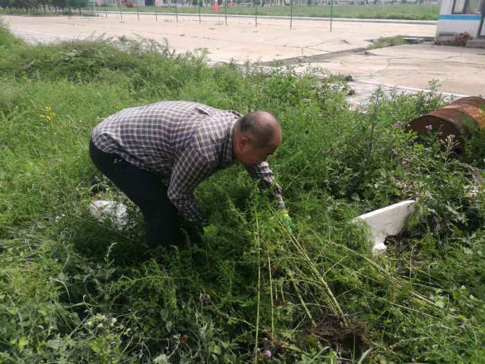 上午七點,大家做好分工合作,不怕臟,不怕累,挽起袖子和褲腿開始勞動起來,拔草、清運雜草等各項工作井然有序。戶外溫度高達30多度,大家頂著烈日酷暑,個個汗流浹背、干勁十足,勞動場面熱火朝天。雖然園區(qū)雜草分布范圍大,想徹底清除雜草并非易事,但是職工們不懼困難,依然在烈日下的草坪中認(rèn)真地尋找雜草并將其清除干凈。經(jīng)過大家兩天的共同努力,園區(qū)的雜草已基本清除干凈,億陽物流園區(qū)的整體環(huán)境煥然一新。